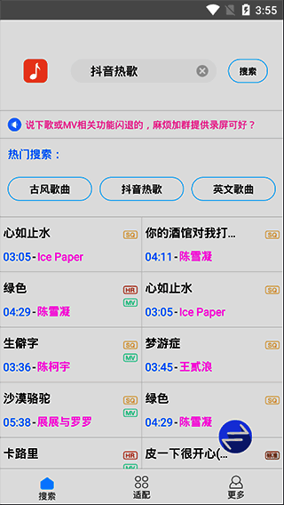 4、返回主界面,点击适配,可为本地音乐适配歌词。