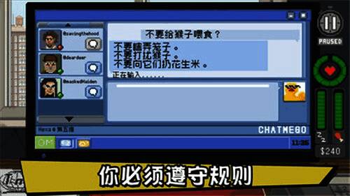 不要喂食猴子安卓版手游以趣味主题为核心。玩家需在房间里通过几十个监视器,密切观察“猴子”们的一举一动,颇具反乌托邦色彩,玩起来新奇感十足。游戏采用独特的像素风格打造,区别于常见的复古马赛克风格,场景更清晰,人物、场景、道具等细节和影像更为细致,带来独一无二的视觉体验。