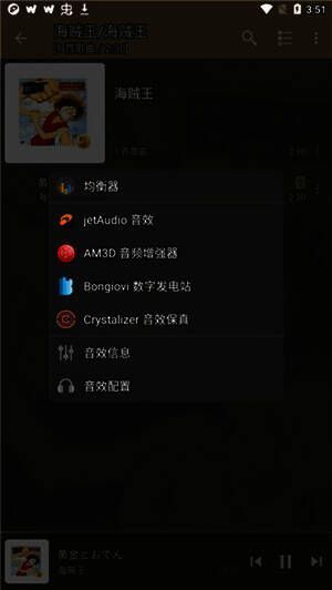 3、有多种音效可供选择,如jetAudio音效、am3d音频增强器等。