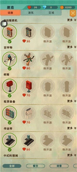 1. 设施设备需解锁,有水平和经费限制。