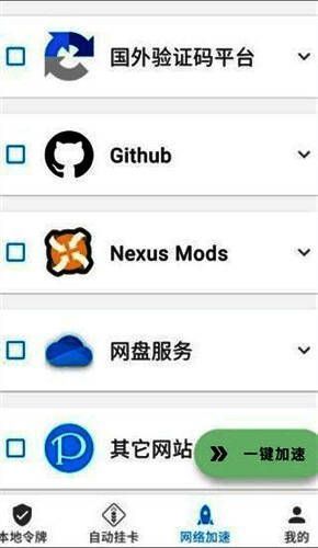 3、设置好登录令牌后,前往网络加速页面选择一个或多个需要加速访问的网站。