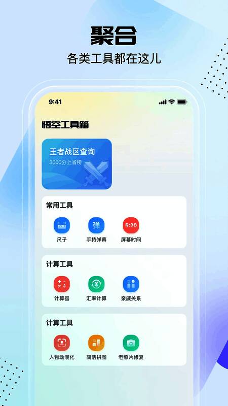 悟空工具箱免费修改版是一款多功能移动工具集合软件,能为用户提供生活、图像、查询、游戏、计算等各类功能,让用户拥有一体机般的使用体验。该软件体积小巧,操作便捷,点击即可使用。它包含动漫化身、旧照片恢复、战区查询等特色功能,还有计算器、汇率工具、尺子等日常小工具,满足用户多样需求。此破解版可解锁 VIP 会员资格。