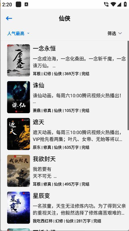 4、为用户设计了多个小说列表,可以帮助读者快速了解当前的热门小说。