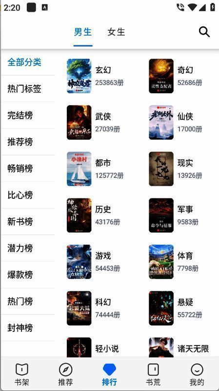 2、进入首页之后,汇集了海量的小说资源,男生女生的都有。