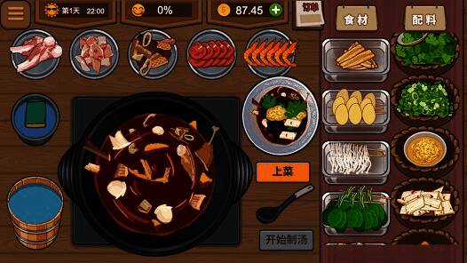 丰富多样的食材和底料搭配,让玩家自由创造独特火锅组合,满足不同顾客需求。
