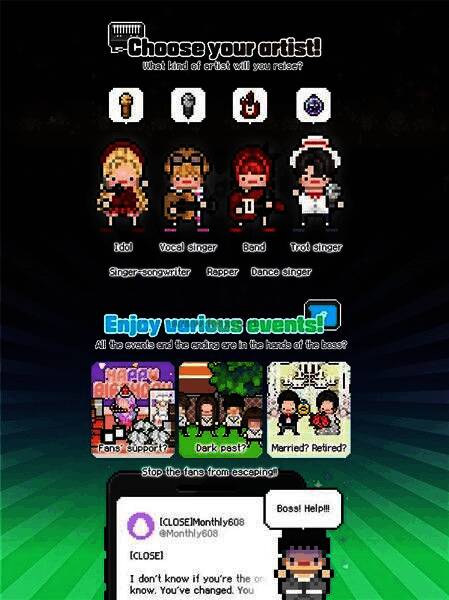 1. 玩家扮演偶像经纪人,通过培养偶像开创自己的音乐帝国。
