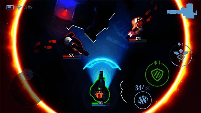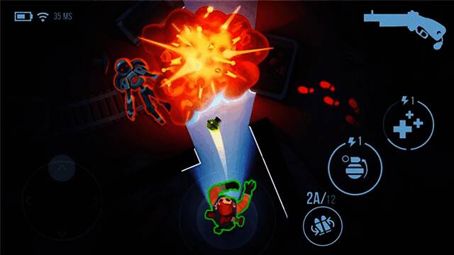 游戏采用俯瞰式上帝视角,左手摇杆控制角色移动,右手按键完成换弹、治疗等操作,操作简单,适合新手。