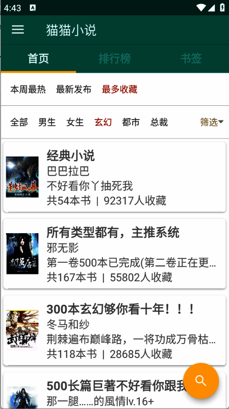 猫猫小说拥有海量小说资源,涵盖言情、悬疑、都市等多种类型,全部免费阅读,满足不同用户需求。小说支持收藏、下载和分享,资源及时更新,告别书荒,还能根据用户阅读偏好智能精准推荐小说。