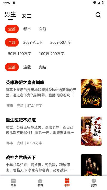 2. 进入软件,“书城”页面有丰富男女小说资源。