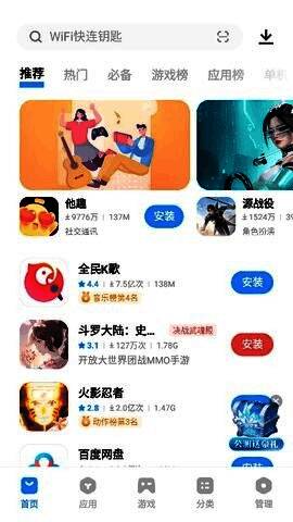 拥有丰富的多媒体资源,如视频、音乐、壁纸、铃声等,满足多样风格需求。精选优质应用和游戏推荐给用户,免去手动更新麻烦。还设有应用社区,用户可在其中共享资源、交流经验与技巧。