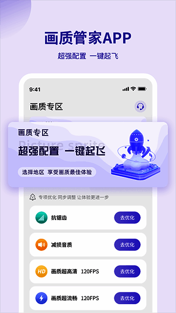 1、打开画质管家,进入主界面后选择适合你的模式,选项包括超高清+120帧、流畅+120帧、全画质、超高音质,以及一键还原。建议尝试“流畅+120帧”,它能显著优化游戏的运行顺畅度,点击后即可生效。