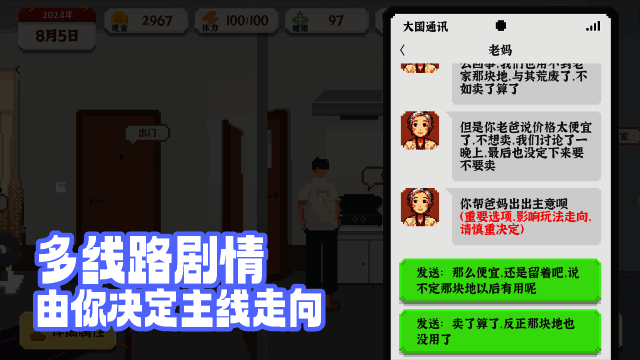 玩家能选择适合自己的赚钱途径,自主培养NPC好感度,部分重要NPC背后有独特故事。