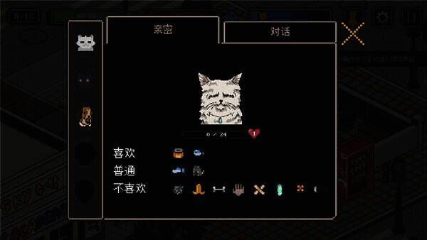 游戏采用养成路线,通过日常的亲密互动和悉心护理提升猫咪的幸福感。游戏时间与现实同步,猫咪的需求会随时间变化。玩家可以领养猫咪,但要为它们找到真心爱猫的新主人。除照顾猫咪外,还能精心装饰猫咪的临时栖息地,让它们住得更加舒适惬意。