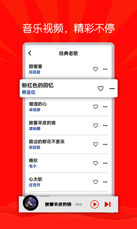 4. 可将喜欢的音乐下载到手机,随时便捷聆听。