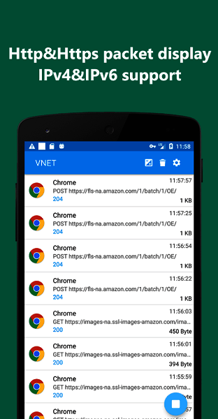 vnet抓包官网版是一个分析和调试HTTP/HTTPS/HTTP2网络数据包的强大工具,类似于Fiddler或Charles工具,支持对HTTP协议数据包和HTTPS数据的分析,并提供各种数据浏览功能,包括Raw视图、Hex视图和Text视图。而且应用可以快速抓取安卓包的信息,一键进行抢包操作。界面清新干净,占用内存少,操作难度不大。即使是新手小白也能快速上手,是大家必备的抢包神器!另外,对于有安全证书问题的,以下为非root用户和root用户提供精准解决方案,有需要的朋友来下载使用vnet抓包官网版吧~
