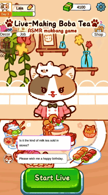 3. 创意装修空间:提供从壁纸到家具的众多装饰选项,玩家可发挥室内设计才能,打造专属风格奶茶店。