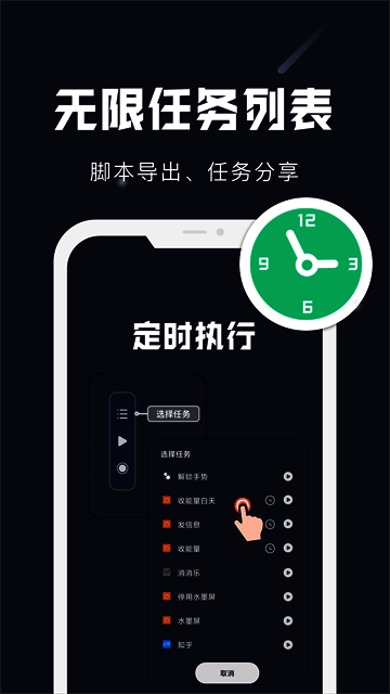 小触控脚本是实用的移动自动点击设置软件,能灵活进行操作录制、图像识别、文本识别等。它精准度高,具备无限任务列表、脚本导出、任务共享等功能。使用方便,自动点击机器人可按时执行任务,自动收集能量、登录、一键组合等。记录定时任务可快速循环操作,开发人员还能在线指导完成定制需求,支持灵活的脚本导入和导出,让你在人工智能时代解放双手,用心思考。