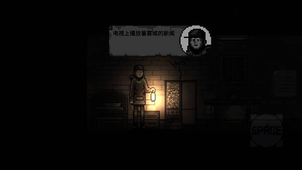 2、游戏开场玩家身处昏暗房间,点击“space”跳过剧情。
