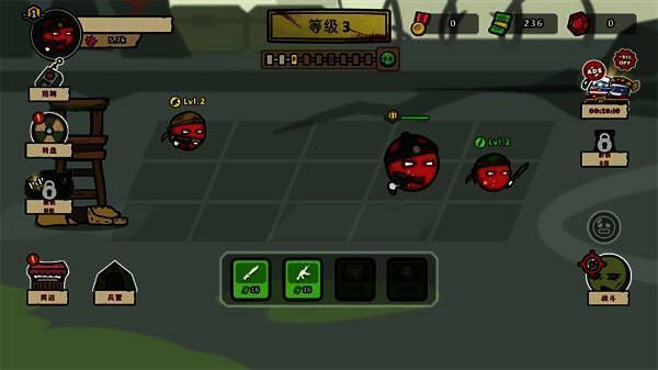 准备好战斗后,玩家点击战斗即可开始攻击。能看到己方军队与敌人交战的过程,战斗中被杀死的球不会被替换,玩家需重新招募和升级。