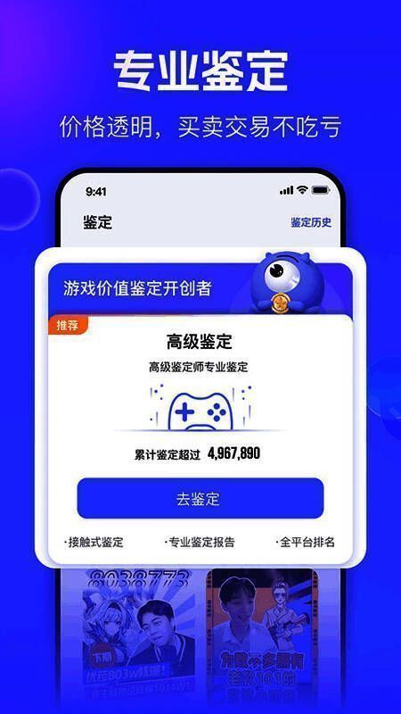 平台专业识别各类商品,设客服、实景验货号等,在线评估账户价值,有四道安全防线确保交易安全,欢迎感兴趣者下载。