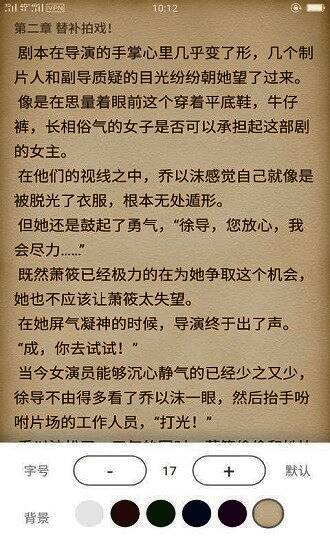 2、用户可按需调整字体、大小、背景颜色等,免费阅读感兴趣的小说,收获舒适体验。