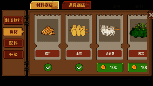 2、玩家可通过进货和升级解锁更多种类的食材,不同食材会吸引不同类型的顾客。