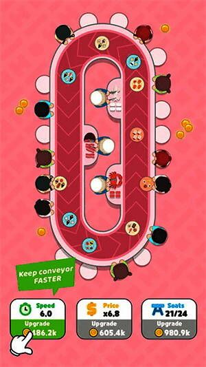 旋转寿司烹饪安卓版游戏(Sushi Bar Fever)是一款别具创意与挑战的竖屏模拟经营佳作。玩家将化身为旋转寿司餐厅的老板,在游戏里大显身手。