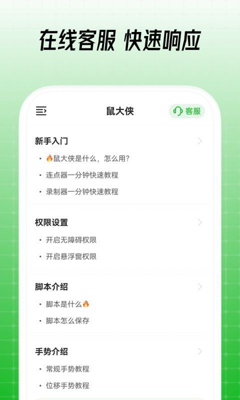 鼠大侠自动连点器最新版,功能十分强大。它支持模拟点击、长按、双击、多点、滑动等多样手势,能自动点击屏幕,让用户双手彻底解放。用户可通过录制功能快速生成脚本,还能设置触发点,实现复杂操作与高频点击,脚本可无限期运行。随机的点击间隔更接近手动操作,能有效防止被检测。