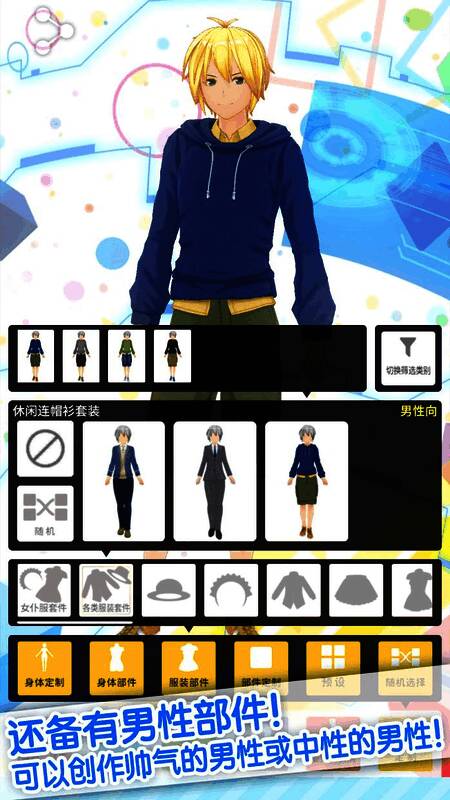 2. 能选择多种身体、服装等零件,通过多样组合创建3D角色。