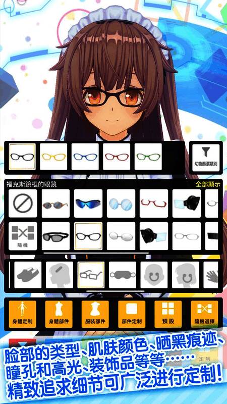 2. 游戏提供从发型到服装、肤色到装饰品等众多零件供玩家选择。
