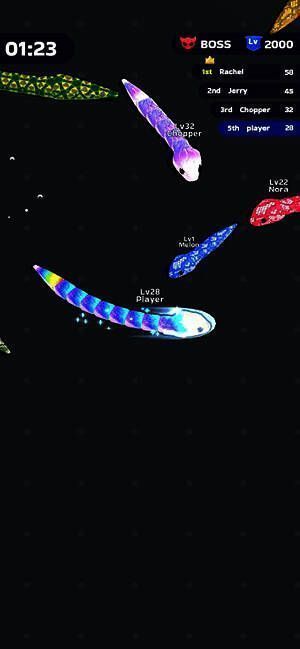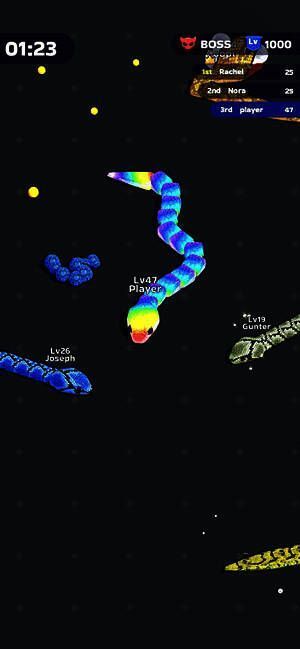 经典模式:这是最基本的游戏模式,玩家在地图上自由移动,吞噬食物和其他蛇来增长自己的长度。当头部碰到墙壁或其他蛇的身体时,游戏结束。