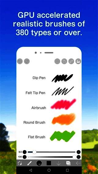 2、拥有121种画笔,涵盖蘸笔、毡尖笔、数码笔、喷枪、扇面笔、平毛笔等。