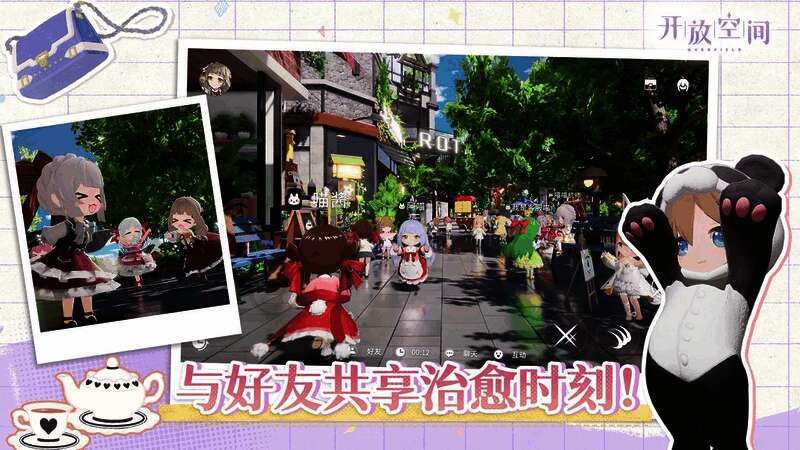 《开放空间》是一款治愈系社交游戏。游戏地图由真实的罗塔花园和探索空间构成。玩家能够建造城镇、制作道具,在花园里尽情体验装扮的乐趣。该游戏支持多人互动,玩家可在沙滩、广场等场景举办聚会,参与游戏活动,共同感受社交的愉悦。