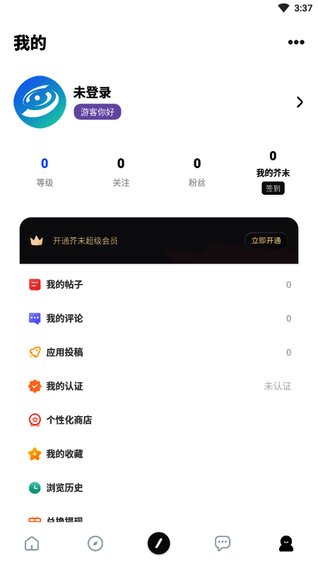 2、在个人空间点击上方的【未登录】进入登录账号界面;