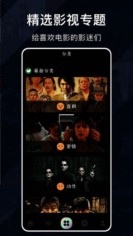 1. 在软件主界面,用户可按喜好选不同类型影视作品,也能按关键字搜索。