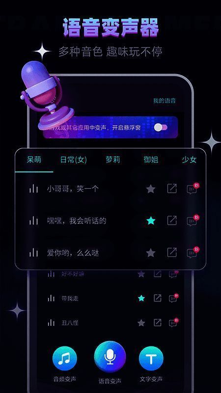 2. 专业变声效果,音效切换自如。