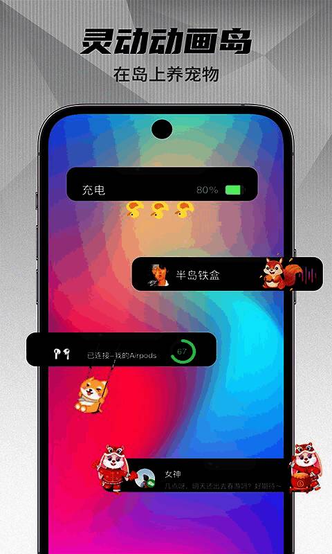 4、广泛兼容性:与多种应用程序方案兼容,确保消息通知以灵动动态显示。