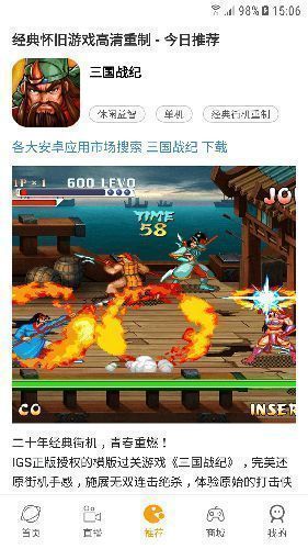 1. 下载怀旧游戏馆后进入app,首页是游戏社区,玩家可在此交流,遇到疑问官方客服会耐心解答。