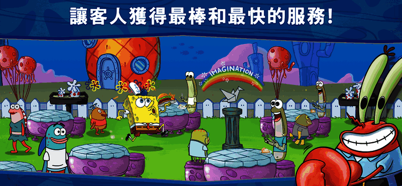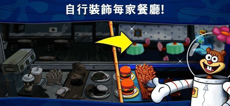 游戏中可打卡标志性的菠萝建筑,呈现出高度还原动漫的海底场景。能让海底世界的人们品尝到多种口味的汉堡及其他美食。
