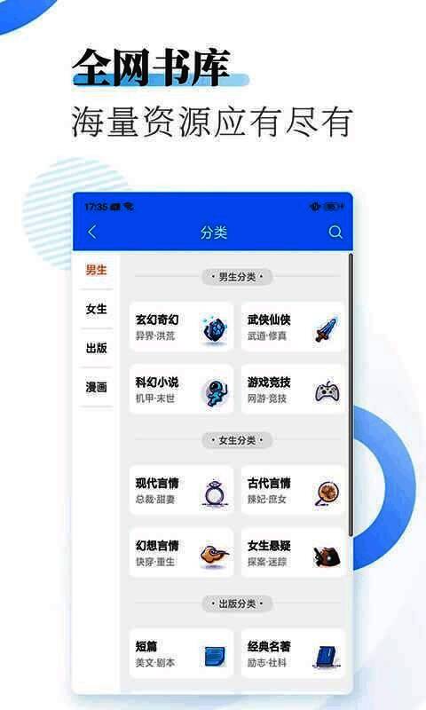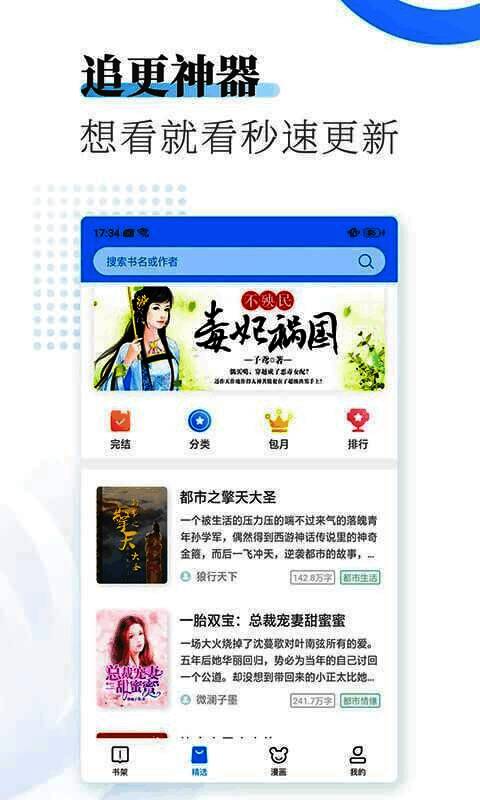 - APP界面简洁、操作方便,可通过分类、排行榜、搜索等快速找书。