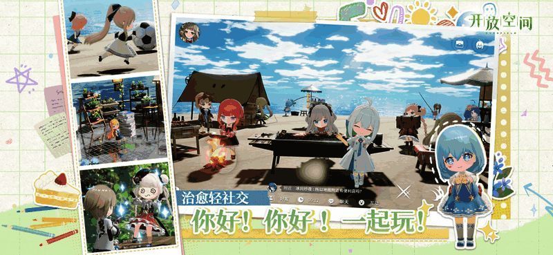 《开放空间》游戏地图由真实罗塔花园和探索空间构成。玩家能建造城镇、制作道具,在花园体验装扮乐趣,还可在沙滩、广场等场景聚会,参与活动享受社交乐趣。