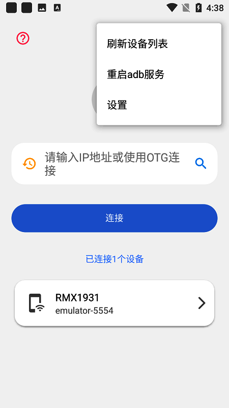 4、在新设备上打开甲壳虫ADB助手,输入被控机的IP地址和端口,即可连接手机设备。