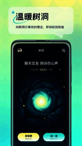 回音树洞最新版是一款极具特色的聊天软件,能为用户带来独特的聊天体验。它就像一个秘密树洞,你可以尽情倾诉秘密、发泄过往,也能发现他人的秘密。用户可自主设置是否与陌生人对话,分享想法还能立刻收到回复。此外,它新增礼物盲盒功能,采用纯粹匿名社交方式,让人释放压力、自由表达。