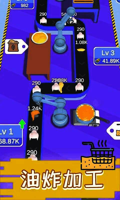 3、店铺升级:借助赚取的收益扩展店铺,解锁更多厨具,提高炸鸡制作效率。