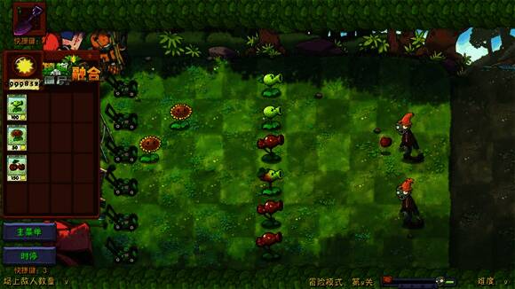 后续布局以阳光帝果为前排,铁桶豌豆为主要火力,获取铁桶豌豆后立刻种植,避免输出不足让鬼影僵尸突破。适当补充樱桃豌豆提高伤害,只要鬼影僵尸数量不多,通关难度不会太高。