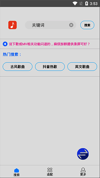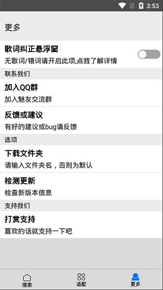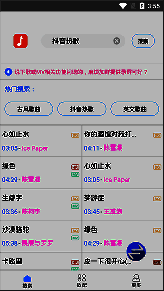 歌词适配软件官方版是实用的音乐下载工具,能帮用户在部分音乐平台免费下载付费或 VIP 歌曲,实现免费收听。其主要功能是音乐搜索,用户可根据歌名或歌词搜歌,输入几个关键字,系统能关联整段歌词,快速找到对应歌曲或相关歌曲。搜索到的内容,可选择在线收听或下载,支持标准、高质量、无损等音质下载。