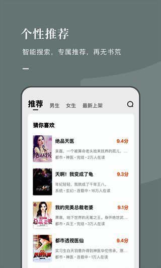 1. 拥有丰富小说资源,涵盖城市、奇幻、武侠、童话、校园等多种类型。