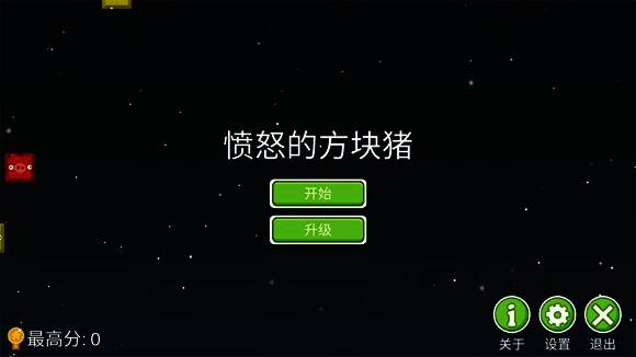 1、启动愤怒的方块猪游戏,点击主界面的开始按钮,开启闯关挑战。