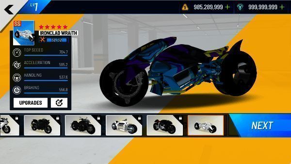 2、【丰富的摩托车选择】游戏提供多种摩托车,每辆车的外观和性能都能按个人需求升级。