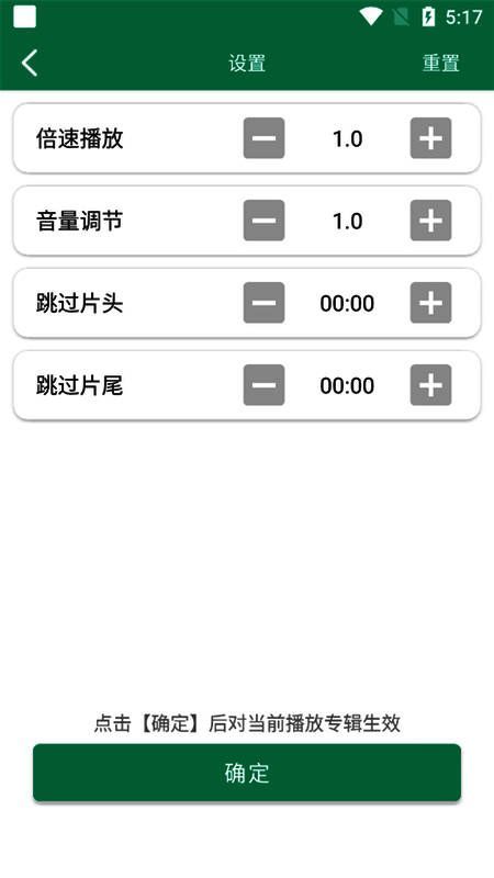 5、在播放页点击设置,用户可自定义调整播放倍数、音量、跳过片头片尾等功能。
